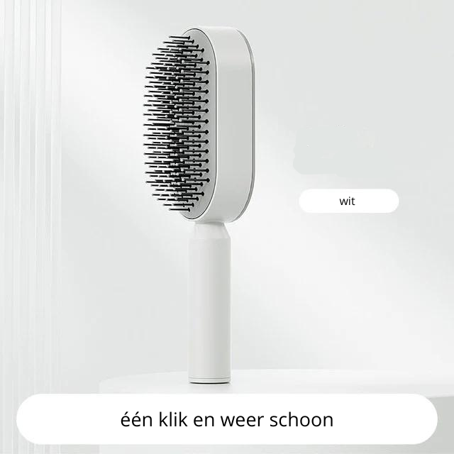 Dan is er nu een oplossing! Maak kennis met de zelfreinigende haarborstel! Deze geweldige borstel reinigt zichzelf snel en gemakkelijk met slechts één druk op de knop. Perfect voor drukke vrouwen die geen tijd hebben om hun haarborstel constant schoon te maken. Bovendien is hij voorzien van een luchtzakmassagekam voor de hoofdhuid die haaruitval tegengaat. Hij is ook antistatisch en zorgt ervoor dat je haar er glad en glanzend blijft uitzien. Wacht dus niet langer en bestel de Zelfreinigende Haarborstel vandaag nog!